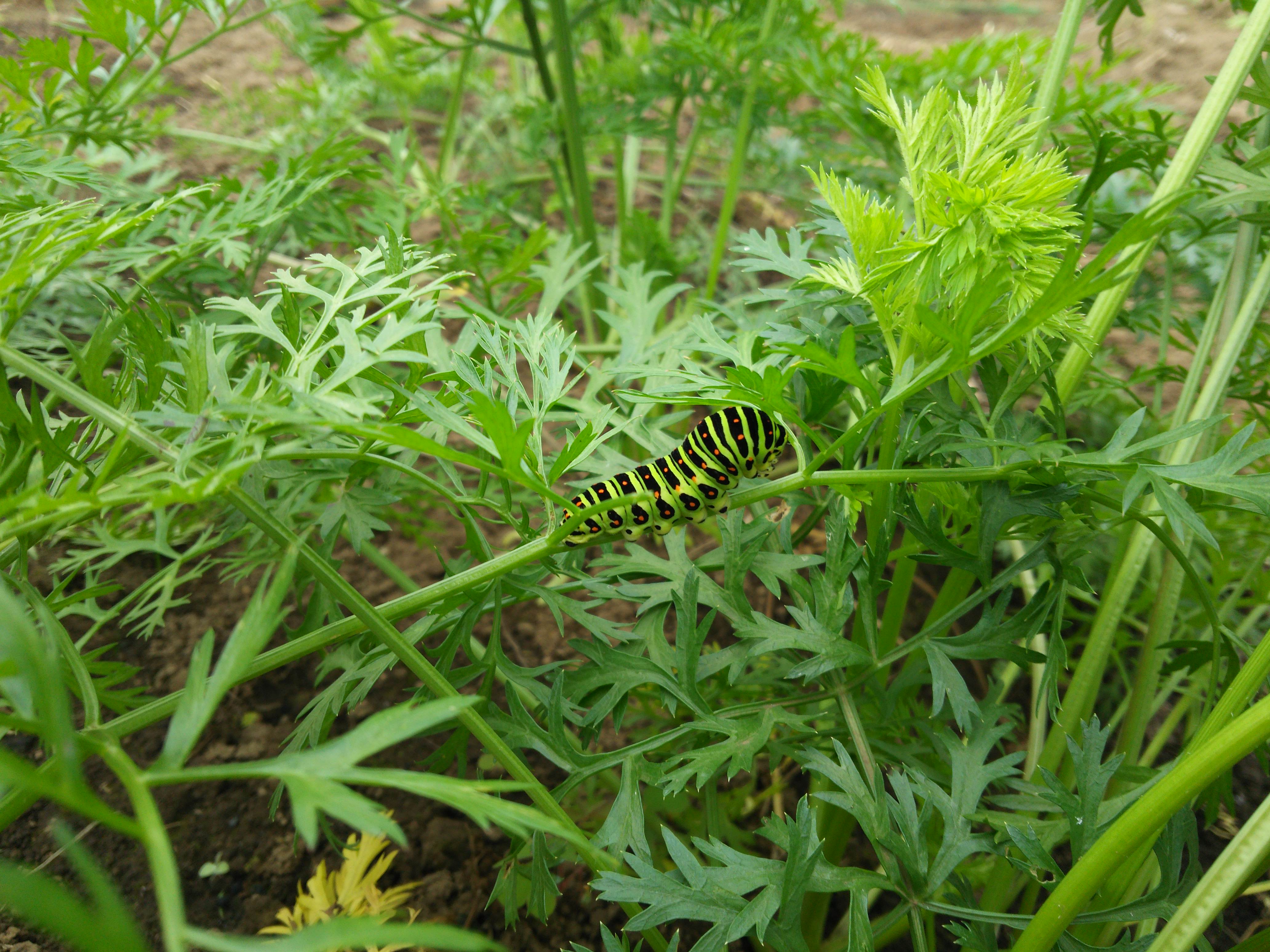 ニンジンの葉にいたキアゲハの五齢幼虫