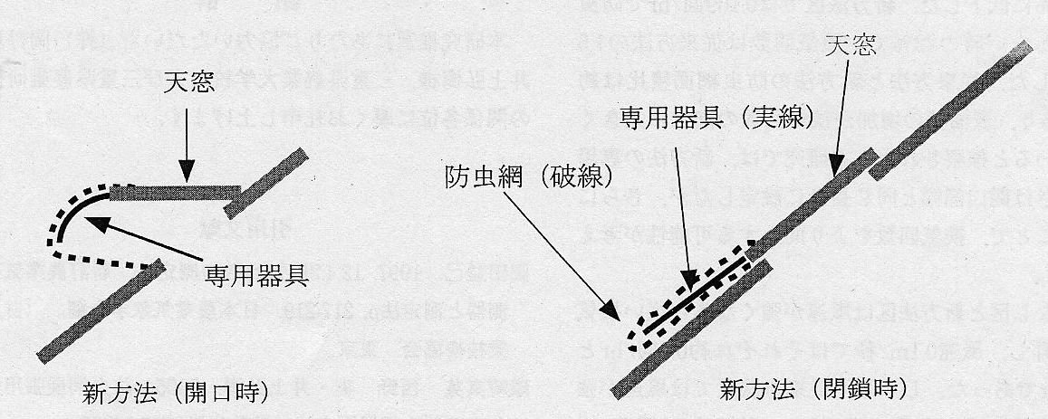 防虫網の新しい張り方による温室内温度上昇抑制 第1報 換気効率と専用器具の形状の検討