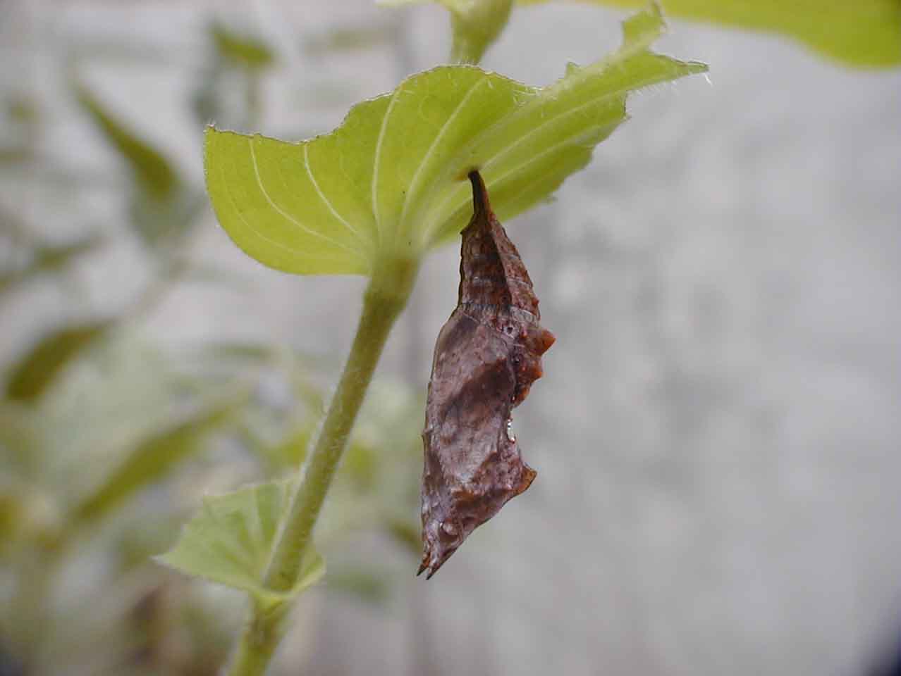 蛹化前になると葉裏に足場を作りぶら下がる